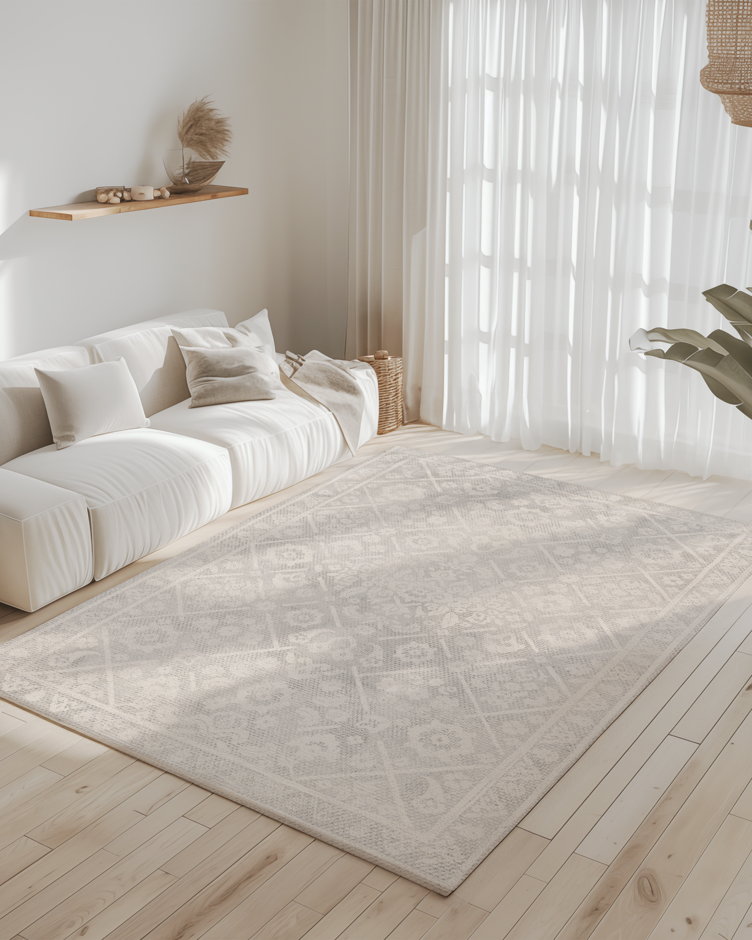 Lado A: por un lado, este play mat presenta un delicado diseño de amapolas en tonos gris y blanco invierno, aportando una elegancia sutil y moderna a cualquier espacio. Su paleta de colores neutros y su patrón floral sofisticado lo convierten en el complemento perfecto para crear un ambiente sereno y refinado, ideal para aquellos que buscan un toque de naturaleza con un estilo contemporáneo.
