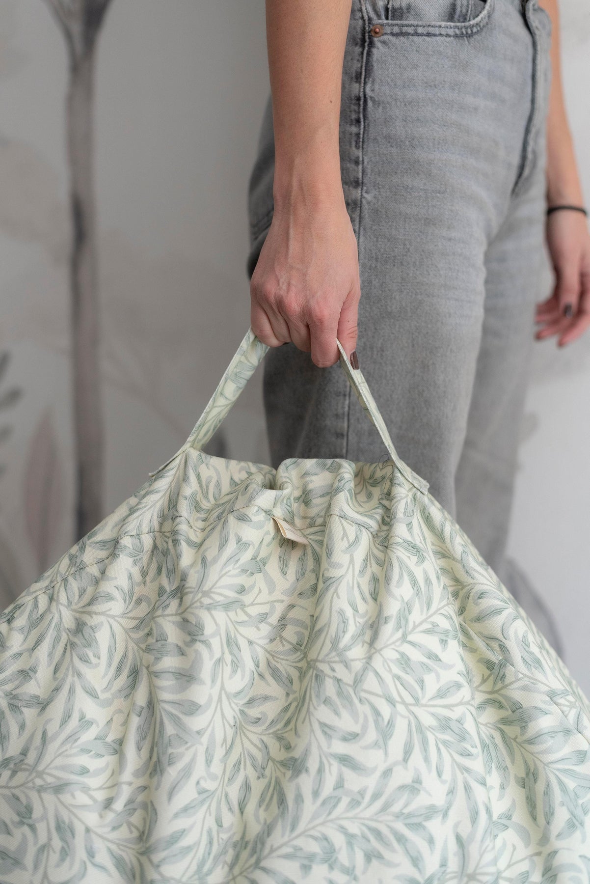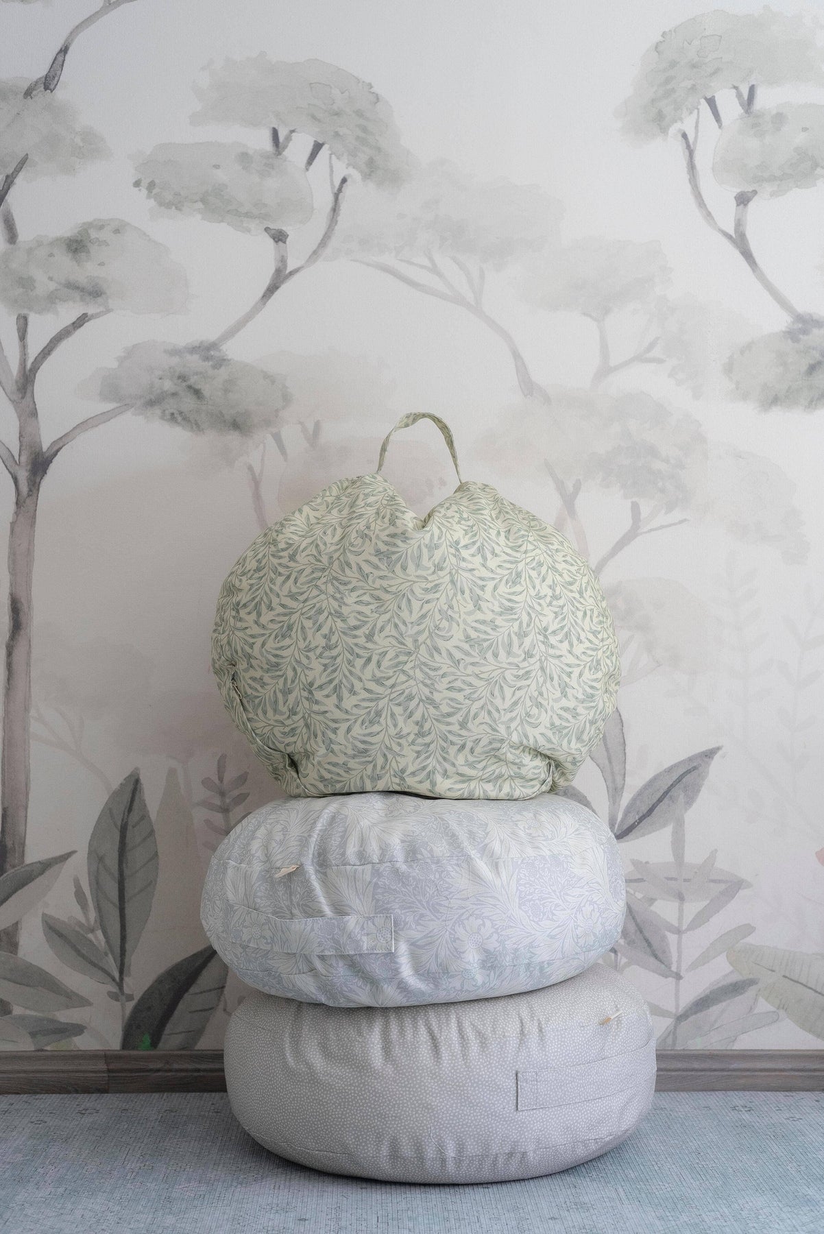 Cada Puf Nube es impreso y confeccionado en Chile. Un proceso completamente local que refleja el sello propio de Kaleido.