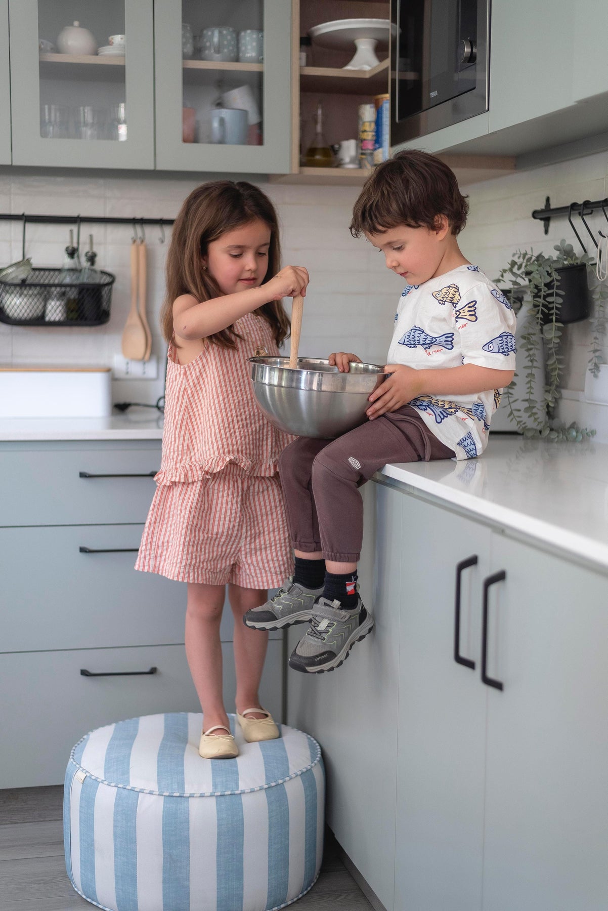 El Puf Tambor está pensado para moverse con libertad por toda la casa y adaptarse a lo que necesites en cada momento. En el living funciona perfecto como asiento extra o reposapiés; en la salita de estar crea rincones acogedores donde pasar el rato con tranquilidad; en el dormitorio suma un toque decorativo mientras aporta funcionalidad; y en las habitaciones infantiles puedes usarlo sin preocuparte por manchas gracias a que se puede lavar su funda. También es ideal para espacios de juego, lectura o relajación, cómodo, firme y se mantiene siempre en su lugar. Adultos, niños e incluso mascotas, todos lo van a usar.