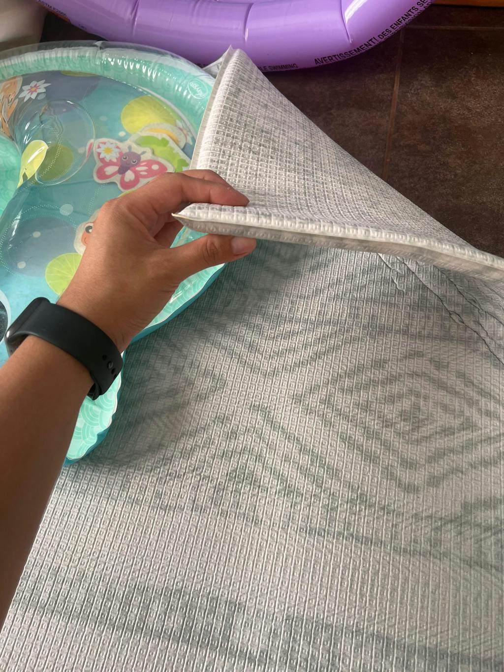 Lo mejor es que se pega al suelo evitando resbalar. Mi bebé la amo, hasta hemos dormido siesta en ella jajaja como ahora es verano se siente fresquita y blandita.