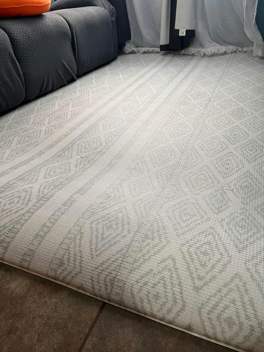 Muy linda alfombra, excelente material, el diseño parece como una alfombra envejecida y aunque la elegí por el lado Celestes, el lago beige me encanto!
